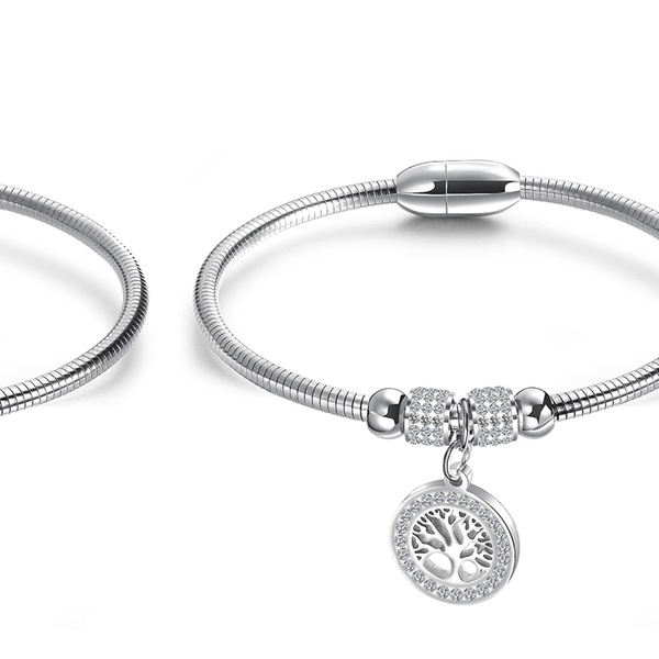 Eleganter Damen-Armreif mit Lebensbaum-Anhänger und glänzenden Swarovski®-Kristallen