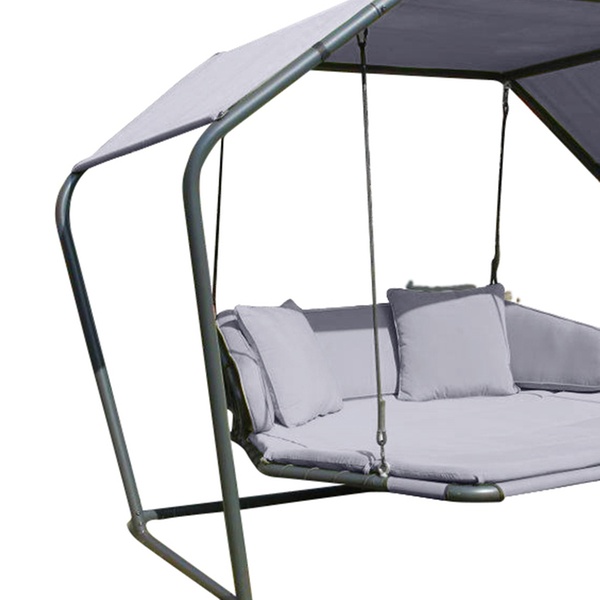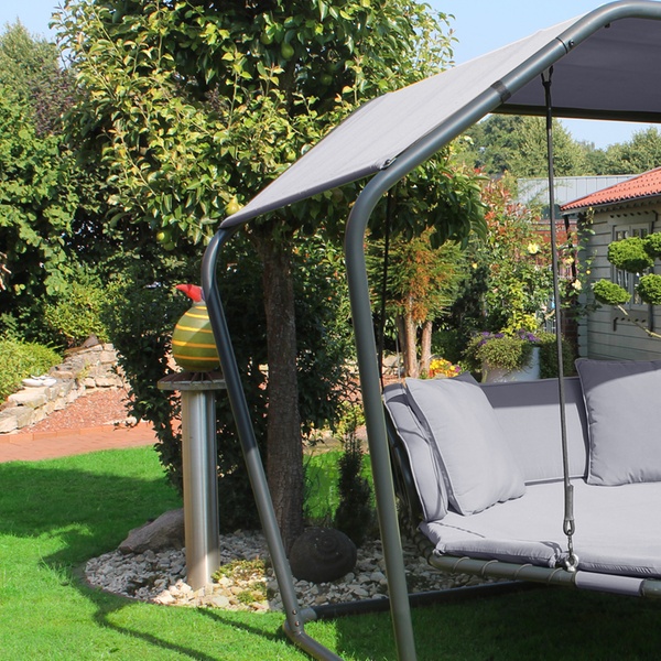 Eine komfortable Liege mit Sonnendach und stabilem Stahlrohrgestell