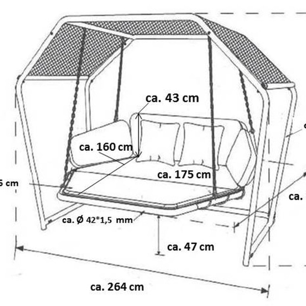 - Gestell: Stahlrohr mit Pulverbeschichtung, Rohr: Ø 48 mm x 2 mm; Ø 42 mm x 1,5 mm