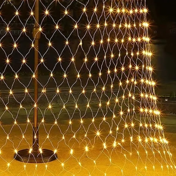 Helles LED Netzlicht (192 LEDs, 3 × 2 m) mit Solar- und USB-Betrieb, 8 Modi, Fernbedienung und wetterfestem Design – perfekt für festliche und ganzjährige Outdoor-Dekoration