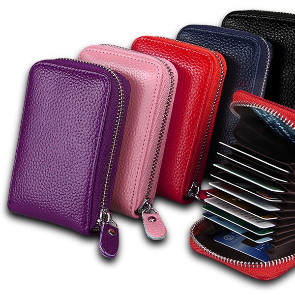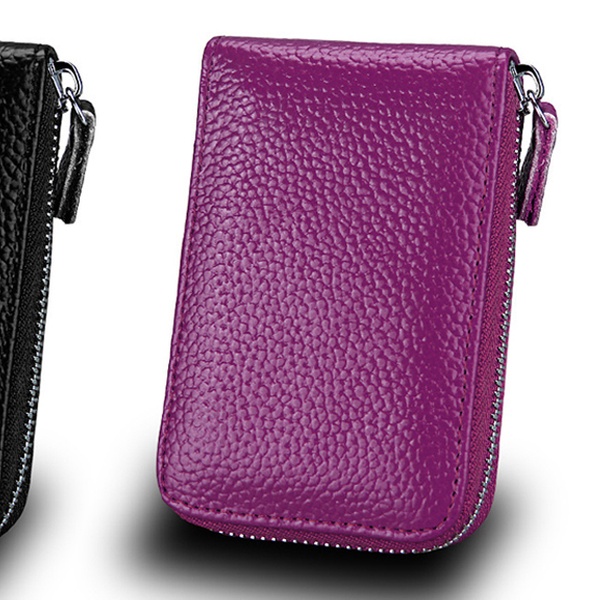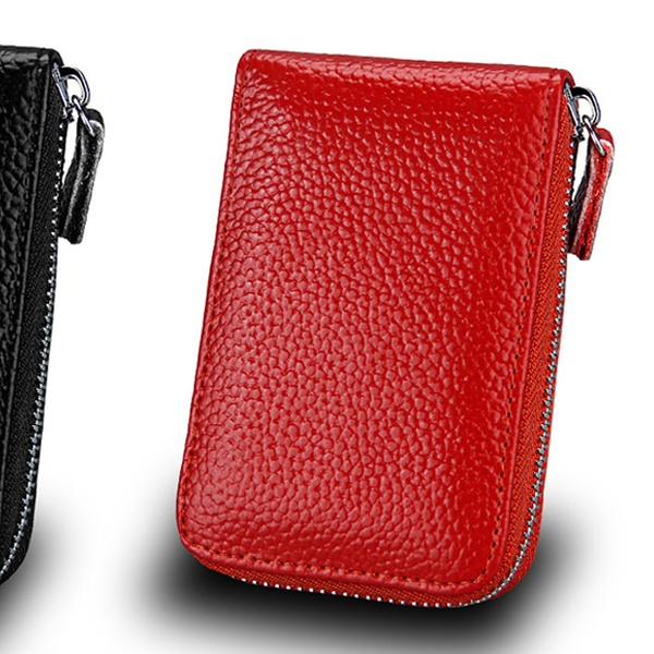 Kompaktes Leder-Etui mit 11 Fächern, Reißverschluss und RFID-Schutz für Kreditkarten