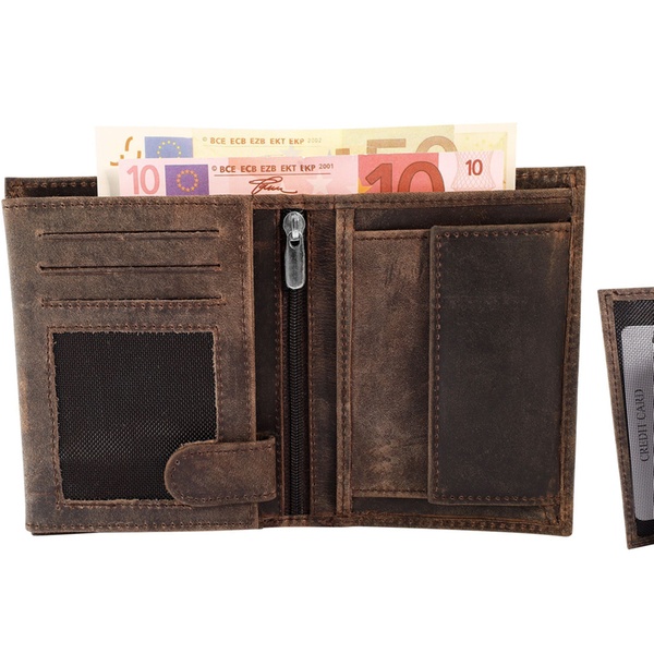 - 2 transparente Ausweisfächer mit Druckknopfverschluss