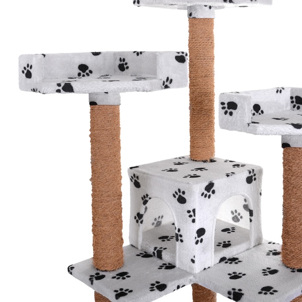 Kratzbaum für Katzen mit Aussichtsplätzen auf verschiedenen Ebenen und großer Höhle zur einfachen Selbstmontage mit Quick-Connect Verbindung