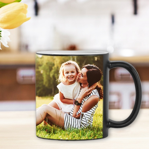 Die attraktive Tasse mit eigenem Foto in einer von 7 Farben sorgt für einen fröhlichen Start in den Morgen