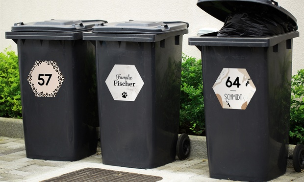 Schon wieder die Mülltonne verloren? Wer sich das nähere Anschauen der Nachbar-Mülltonnen ersparen möchte, um die eigene wiederzufinden, hat mit den personalisierten Mülltonnenaufklebern mit Text von Lieblingsfoto eine schnelle und praktische Lösung gefunden. Der eigene Abfallbehälter ist somit im Handumdrehen zu erkennen und nicht mit anderen zu verwechseln. Die Aufkleber können online mit verschiedenen Themen und Designs personalisiert und mit der eigenen Hausnummer oder dem Familiennamen versehen werden. Außerdem bestehen sie aus einem hochwertigen, strapazierfähigen Material, das den unterschiedlichen Wetterbedingungen gewachsen ist und sie lassen sich ganz einfach anbringen. Groupon-Kunden, die den Neid der Nachbarschaft auf sich ziehen möchten, können die Aufkleber in unterschiedlichen Größen bestellen und somit für individuelle, nicht zu verwechselnde Mülltonnen sorgen.