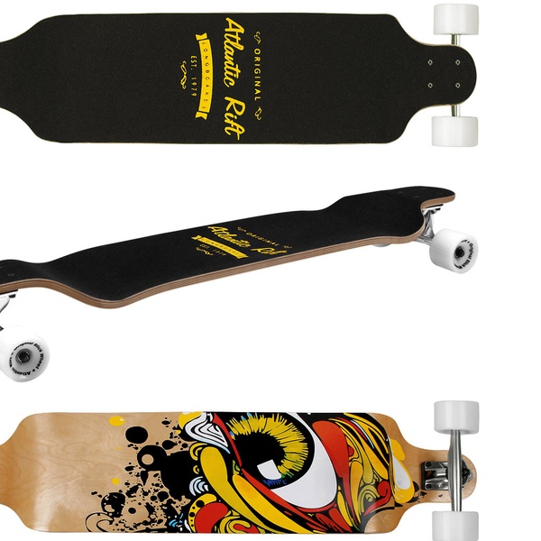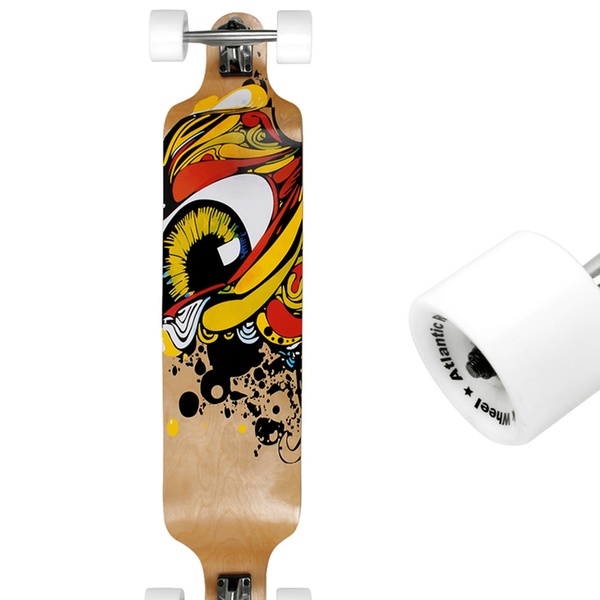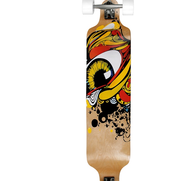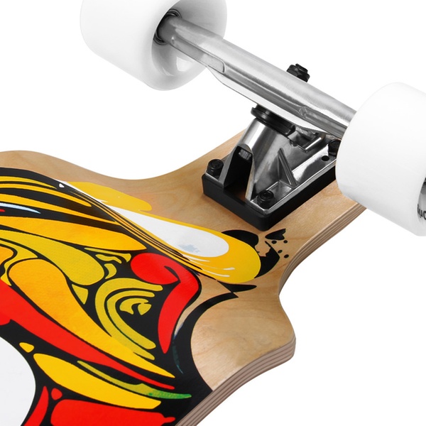 Ein Longboard in buntem Design mit Kugellager ABEC 9 für ein komfortables Fahrgefühl
