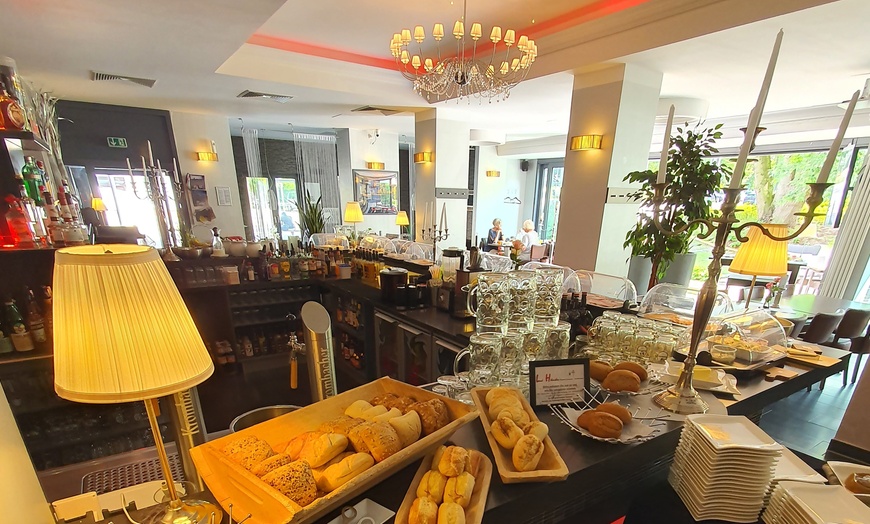 Genieße eine Auswahl an frischen Backwaren, delikaten Aufschnitten, und erlesenen Käsesorten, begleitet von frischen Säften, aromatischem Kaffee und Tee.