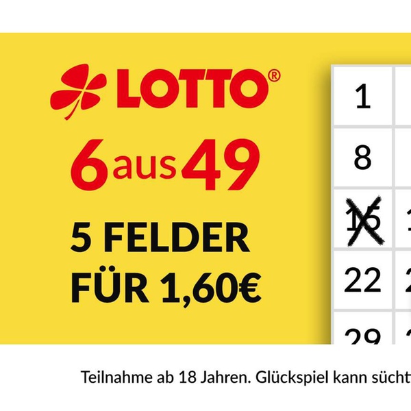 - 5 Felder für 1 Ziehung im Wert von 6,60 € spielen, aber nur 1,60 € direkt bei LOTTO24 zahlen - 5 € sparen
