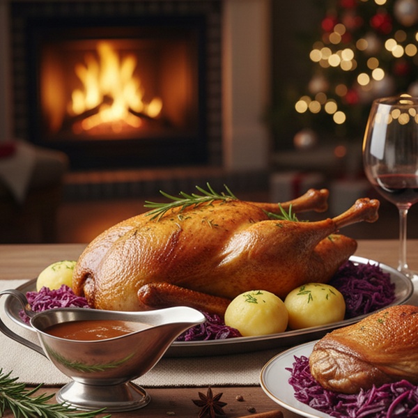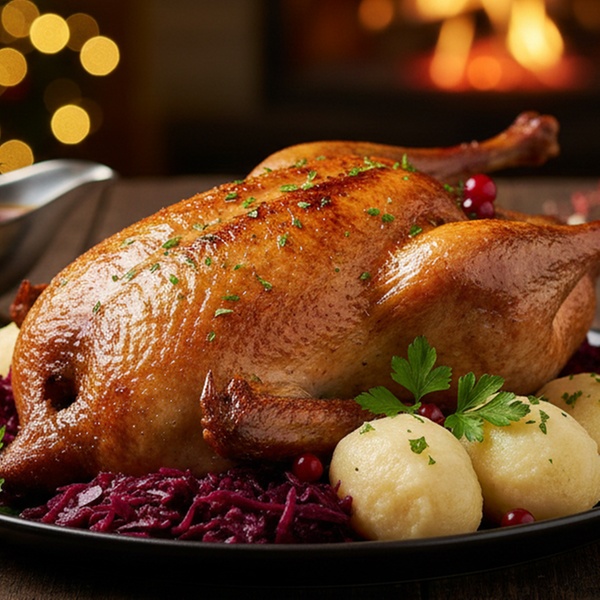 • 1 Weihnachtsente inkl. Beilagen zum Abholen für 2 Personen
