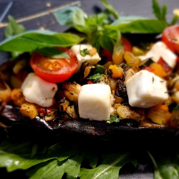 Mediterranes Grillgemüse in Aubergine auf Feta