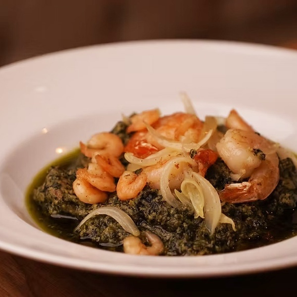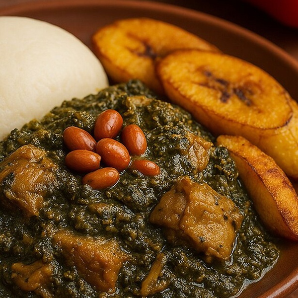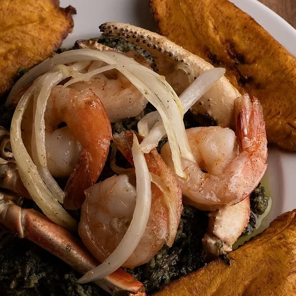 - Ndole Royal: Gemüse, Garnelen, Krabben, Erdnüsse, Rindfleisch, Knoblauch