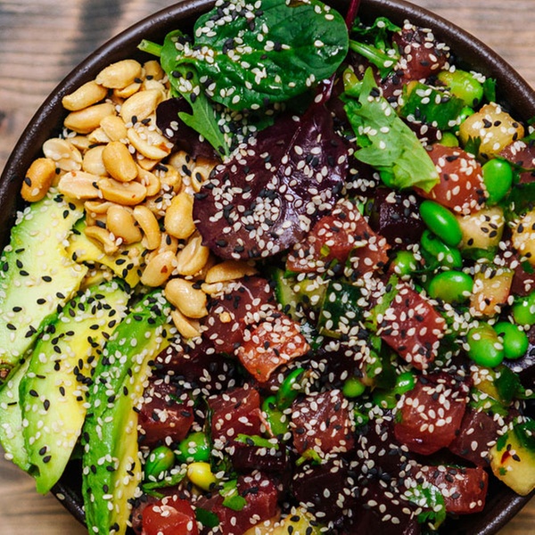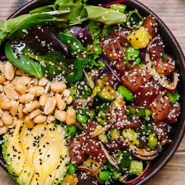 - Lanai Tuna Bowl: mit Ahi Tuna, Edamame, Gurken, Rote Bete, Koriander, Crazy Lime Flavor, Avocado und Erdnüsse.