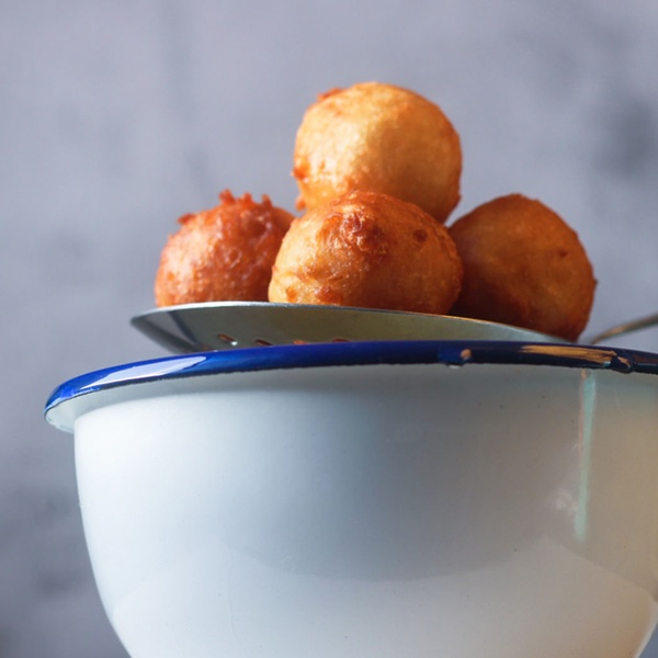 - Gang: Mikate – Frittierte Teigbällchen mit Mango-Zitronen-Creme