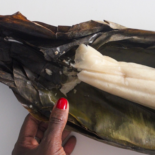 - Gang: Fumbwa ya Mwamba / Kwanga – ''Spinat'' in Erdnussbuttersauce mit Maniokbrot