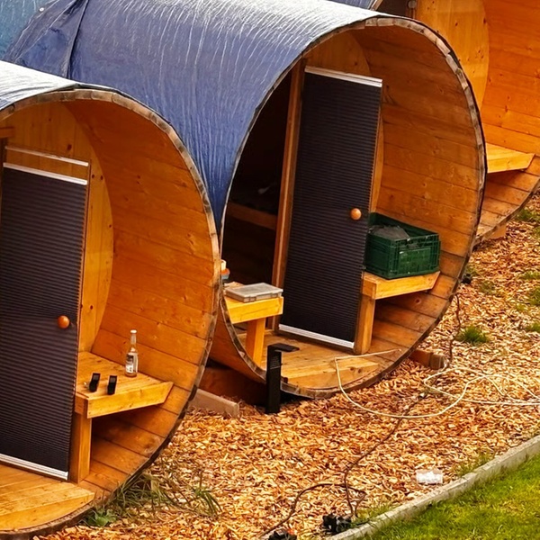 - Übernachtung im Campingfass inkl. Frühstück, 3-Gänge-Menü und 1 Flasche Wein
