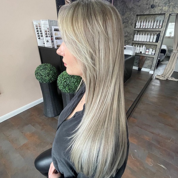 - Balayage Komplettpaket inkl. Glossing & Newsha Haarkur-Rescue-System: Waschen, Schneiden & Föhnen