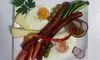 - Omelette (aus 2 Eiern) mit hausgemachtem Brot, Käse und frischem Gemüse oder mit Salami und Schinken oder mit Salami, Schinken, Käse und frischem Gemüse