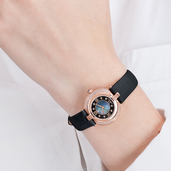 Eine stilvolle Lederarmbanduhr für Damen mit Zirkondia-Kristalle