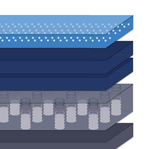 - Unterseite als Taschenfederkern (einzelne, mit Leinentaschen ummantelte Federn aus Titanlegierung)