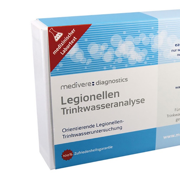 Medivere Legionellen-Test zur Trinkwasseranalyse, vertrieben von Vimeda – folgende Optionen stehen zur Auswahl: