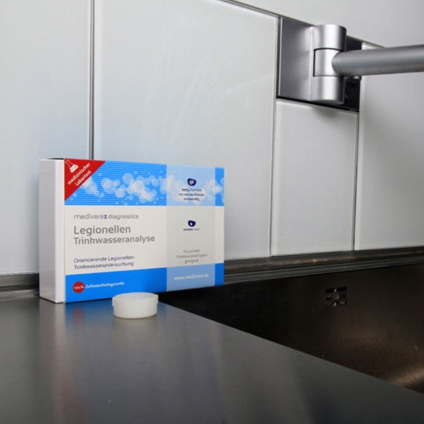 Praktisches Kit für eine orientierende Legionellen-Untersuchung im Trinkwasser zuhause inkl. Laborbericht nach 14 Werktagen