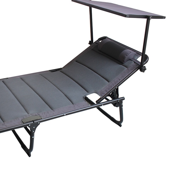 Eine zeitlose, praktische und langlebige Sonnenliege mit Dach und Kissen für den Garten oder Strand