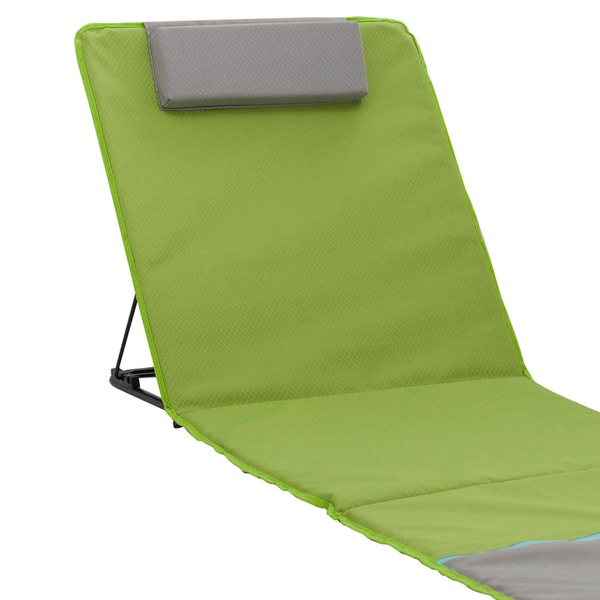 Eine praktische und platzsparende Outdoor-Strandmatte inklusive Kopfkissen und Tragetasche mit Reißverschluss