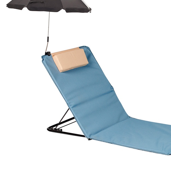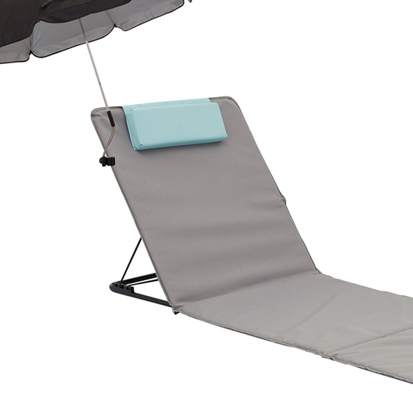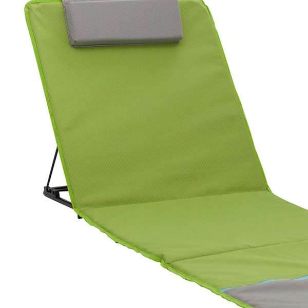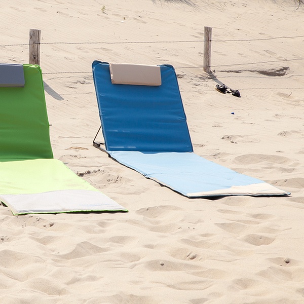 Eine praktische und platzsparende Outdoor-Strandmatte inklusive Kopfkissen und Tragetasche mit Reißverschluss