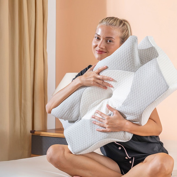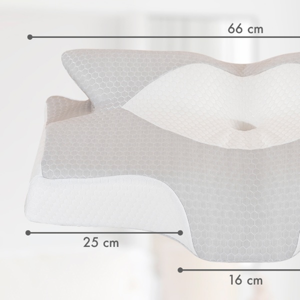 Dieser Memory-Schaum-Kissen mit schmetterlingsförmigem Design und 6 Konturzonen kann sich jeder Schlafposition anpassen