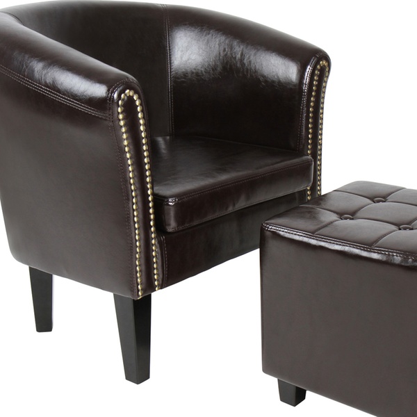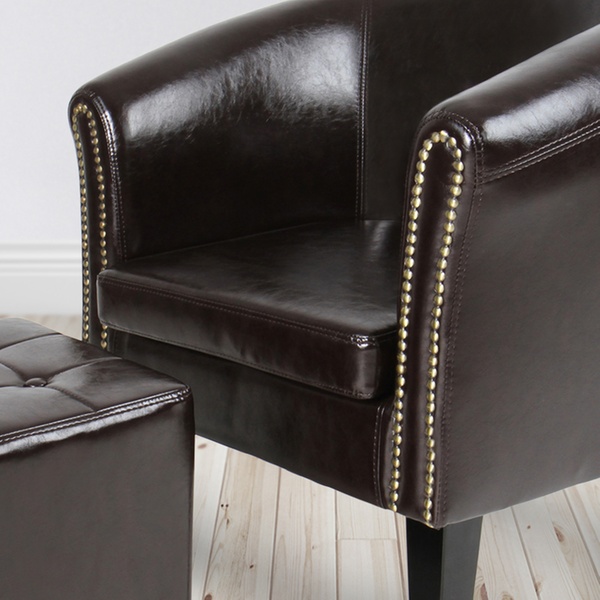 Stilvoller und bequemer Sessel im Chesterfield-Stil mit passender Ottomane