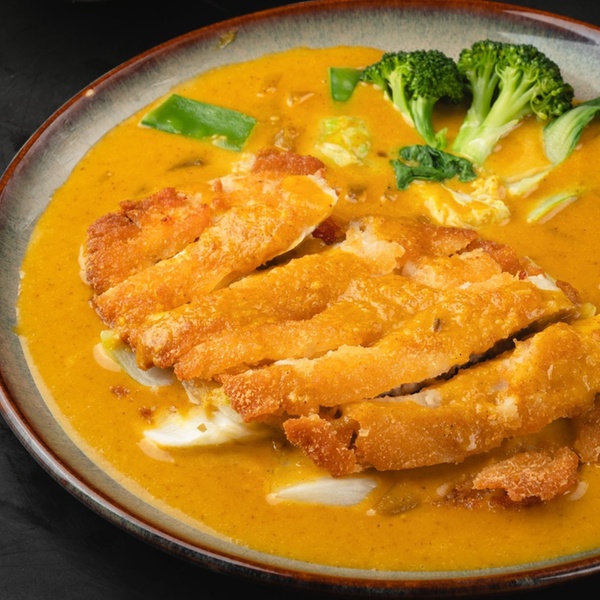 - Phanaeng: Duftreis, rotes cremige Curry mit Kokosmilch, Basilikum und Limettenblättern - mit Hühnerfleisch oder Tofu