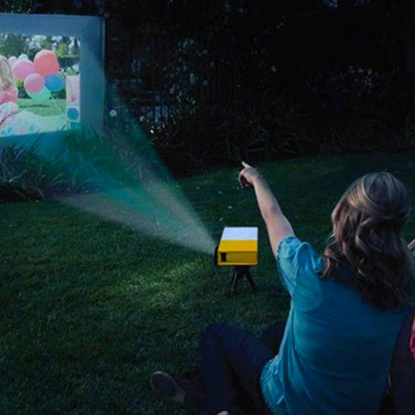 Portabler Mini-Projektor mit integriertem Lautsprecher sowie USB-Zugang für die Verbindung mit Fernseher, DVD-Player, Computer etc.
