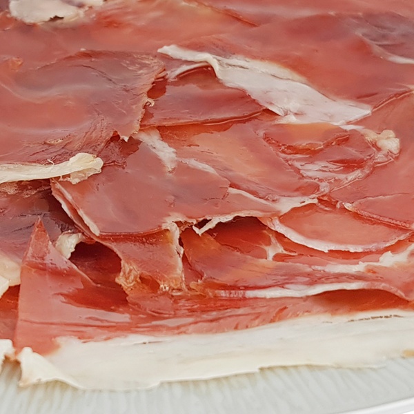 Inhaltsstoffe: Schweineschinken, Salz, Zucker, Konservierungsstoffe (E-252 und E-250) und Antioxidationsmittel (E-301)