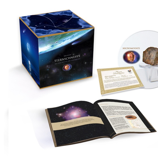 Mit diesem Coupon vom Mondland Verlag muss der Satz „Ich hole Dir die Sterne vom Himmel“ kein leeres Versprechen bleiben: Erfahrene Sammler haben in der marokkanischen Wüste Bruchstücke eines Meteoriten gefunden, dessen Echtheit wissenschaftlich bestätigt wurden. Die Bruchstücke des ursprünglich aus der Region zwischen den Planeten Mars und Jupiter stammenden Meteoriten wurden in einem aufwendigen Verfahren bearbeitet, so dass nun an einer Schnittkante die innere Struktur des extraterrestrischen Gesteins mit seinen geheimnisvollen metallischen Einlagerungen sichtbar ist. Erhältlich ist dieses besondere Geschenk in einer limitierten Auflage mit Echtheitszertifikat und in einer stilvollen Würfelbox.