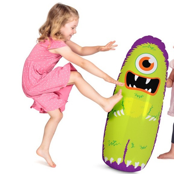 Aufblasbarer Boxsack mit einem mit Wasser gefüllten Standfuß für spielerischen Abbau von kindlicher Energie ohne Verletzungsrisiko
