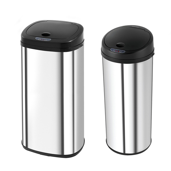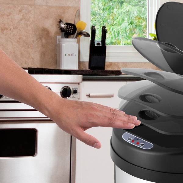 Der Sensor-Mülleimer im modernen Design öffnet sich automatisch, wenn die Hand 15-20 cm von ihm entfernt ist