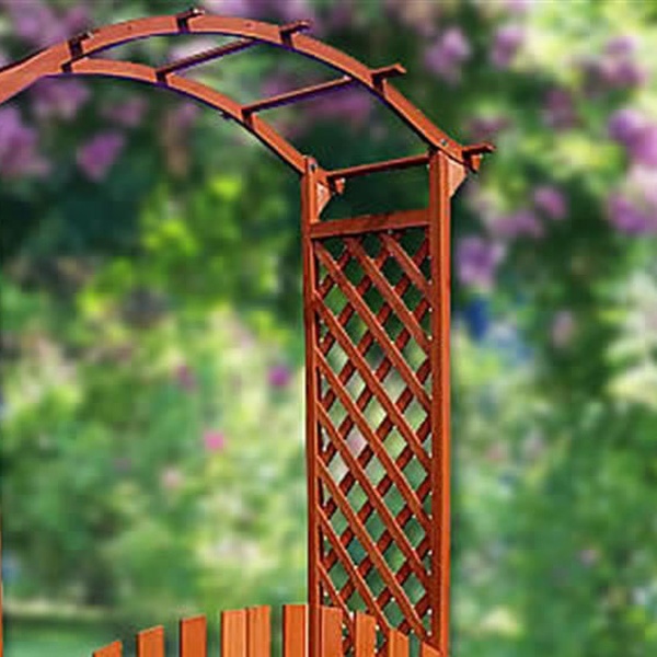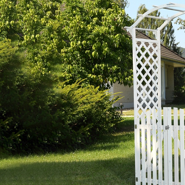 Dieser grazile Rosenbogen aus Holz eignet sich als Eingang, Durchgang oder zur Dekoration des Gartenweges