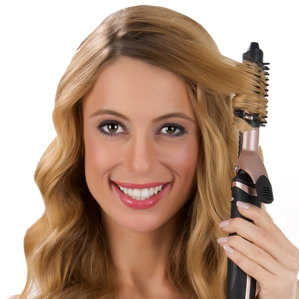 - 6-in-1: Glättbürste, Glätt- und Kreppeisen, Lockenstab, Lockenhilfe und Volumenstyler
