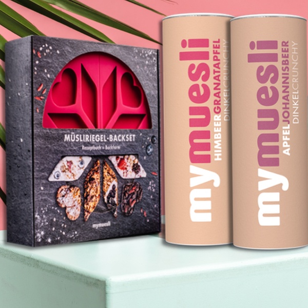 Wer sich lieber gerne kreativ betätigt, backt sich mit dem mymuesli Backset ganz einfach seine Müsliriegel selbst. Der mymuesli Gutschein enthält ein Backbuch mit 17 bewährten Müsliriegel-Rezepten und eine Backform aus Silikon, die sich nach Gebrauch in der Spülmaschine reinigen lässt. Selbstgemachte Müsliriegel sind ein tolles Mitbringsel und eine überraschende Geschenkidee, bestens als Reiseverpflegung oder Zwischensnack im Alltag geeignet. Der 2go-Becher natürlich auch.
