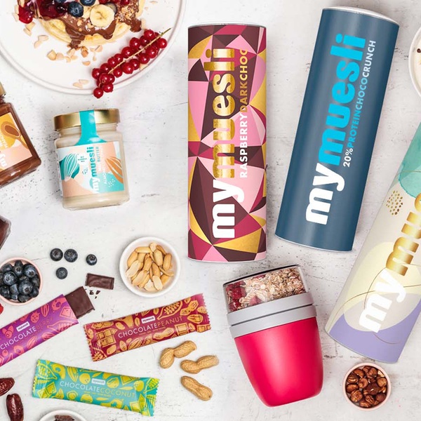 Bei mymuesli kann man sich aus 80 Bio-Zutaten das Lieblings-Müsli bequem selbst zusammenstellen. Einfach die gewünschten Zutaten und die Wunschverpackung wählen und die Nährwerte anzeigen lassen. Der Müsli-Mixer macht sagenhafte 566 Billiarden Variationen möglich. Alternativ gibt es vorgefertige Müslis, vom klassischen Bircher, über Granola und Schoko bis hin zu Paleo oder vegan. Für alle Müslis werden ausschließlich Bio-Zutaten aus kontrollierter Herkunft verwendet, auf den Einsatz von Gentechnik, künstlichen Aromen sowie Farb- und Konservierungsstoffen wird verzichtet. Für die hohe Bio-Qualität bezieht mymuesli Zutaten wie kernige oder zarte Haferflocken soweit möglich aus regionalem Anbau. Mittlerweile gibt es auch eine Reihe von mymuesli Stores, in denen man Müslis probieren, vom Müsli-Berater auf dem Weg zum Lieblings-Müsli beraten werden oder das Frühstück im 2go-Becher einfach mitnehmen kann.