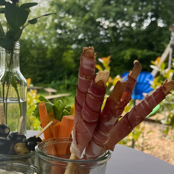 • Kräuterdipp, Salsa, Wildkräuterpesto, Tomaten-Zucchini-Letscho, Knoblauchdipp, Butter