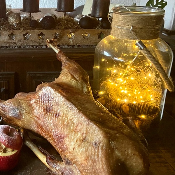 • 1 Gans im Ganzen am Tisch tranchiert für bis zu 6 Personen