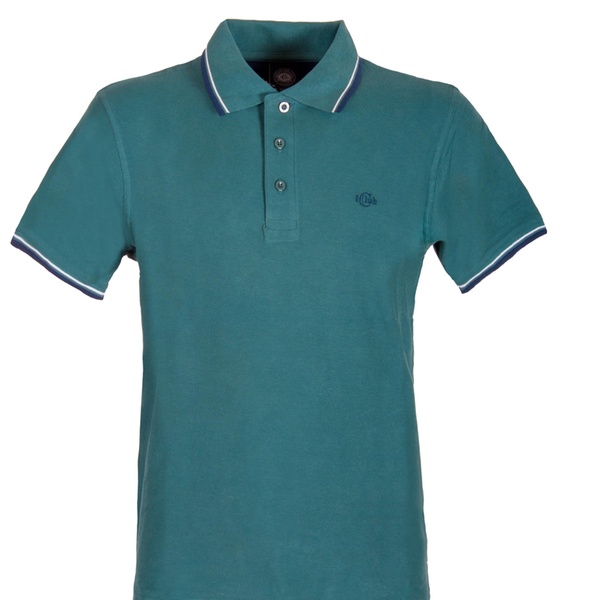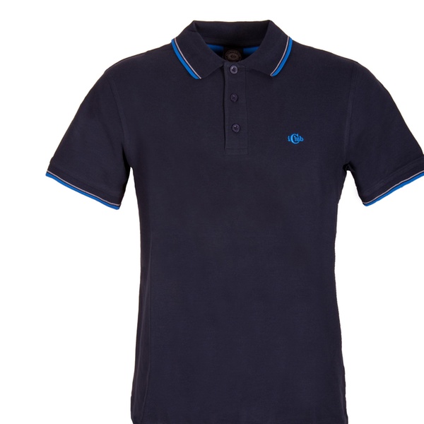 Ein klassisches Polo-Shirt von Nazareno Gabrielli mit iClub-Logo auf der Brust und Rippstrickkragen mit zwei kontrastfarbigen Streifen