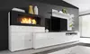 Elegante Glanzlack-Schrankwand für das Wohnzimmer mit behaglichem Bioethanol-Kamin, TV-Schrank, Unterschrank und Regalen