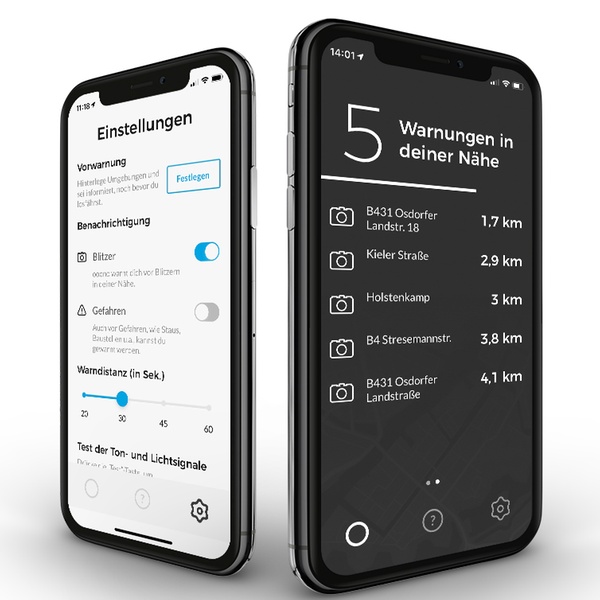 Der ooono Verkehrsalarm macht auf Gefahren und Geschwindigkeitskontrollen im Straßenverkehr aufmerksam