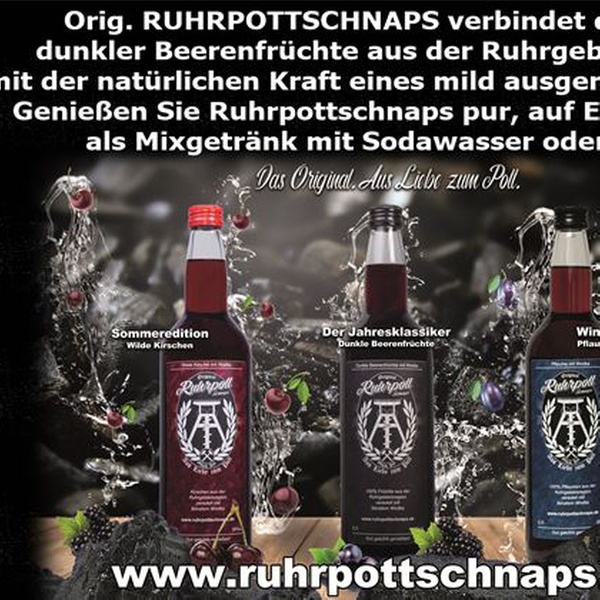 Das Unternehmen „Original Ruhrpott Schnaps“ verbindet Genuss mit Heimatgefühl. Die nostalgische Ruhrgebiet-Tradition, verschiedene Dinge und Gewohnheiten mit dem POTT – kurz und liebevoll für Kohlenpott – zu verbinden, ersteht aus der tiefen Verwurzelung des Ruhrgebiets mit dem Bergbau. Denn aus dem Pott kann man vieles! Daher hieß das Motto auch „Aus Liebe zum Pott“, als vor einigen Jahren zwei als Ruhrpottkinder in Bochum aufgewachsene Entrepreneure auf die wundervolle Idee kamen, ein alkoholhaltiges Likör-Getränk mit Zutaten aus der Ruhrpottregion zu zaubern. Der entstandene Ruhrpottschnaps nutzt die Reife verschiedener Früchte, 100 % aus dem Revier, mit der natürlichen Kraft eines mild ausgereiften Wodkas. Mittlerweile wird das erfolgreiche Unternehmen von einem der beiden Ruhrpottkumpels geführt und der fruchtige „Schnappo“ aus dem Pütt im Online-Shop, in Groß- und Kleinhändlern, Restaurants, Gaststätten, und sogar im Deutschen Bergbau Museum Bochum verkauft.