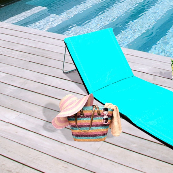 Mit verstellbarem Rücken und gepolstertem Bezug bietet diese Faltmatratze perfekten Komfort für entspannte Momente im Freien