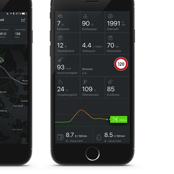 Eine Smartcar-Lösung mit 9 innovativen Features wie Performance-Monitor, elektronisches Fahrtenbuch, Notruffunktion und Find-my-Car-Funktion