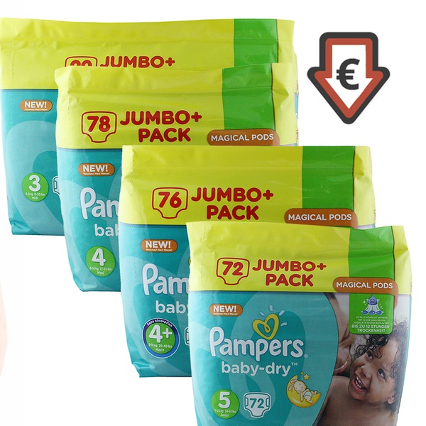 - 2x Pampers Baby Dry Größe 4+, 76 St (152 Stück) (Grundpreis: 1 St = 0,21 €)