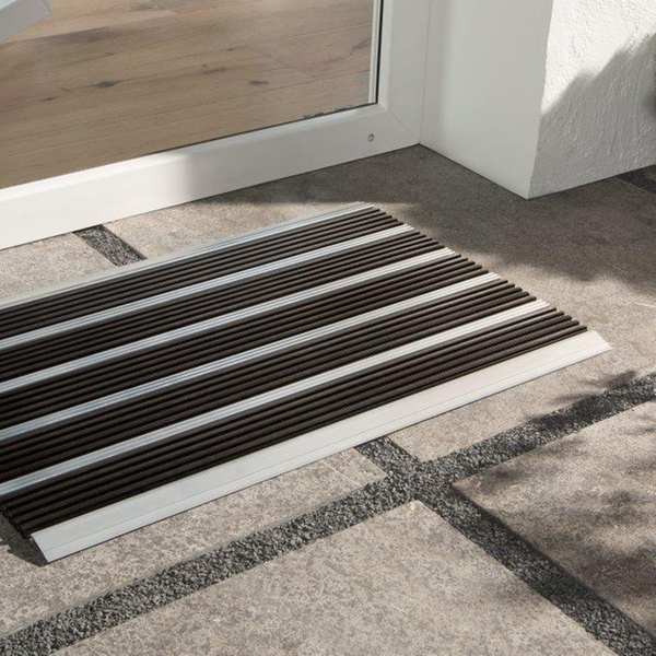 Die robuste und stabile Fußmatte aus Aluminium mit Gummieinlagen verleiht jedem Eingangsbereich ein elegantes Erscheinbungsbild